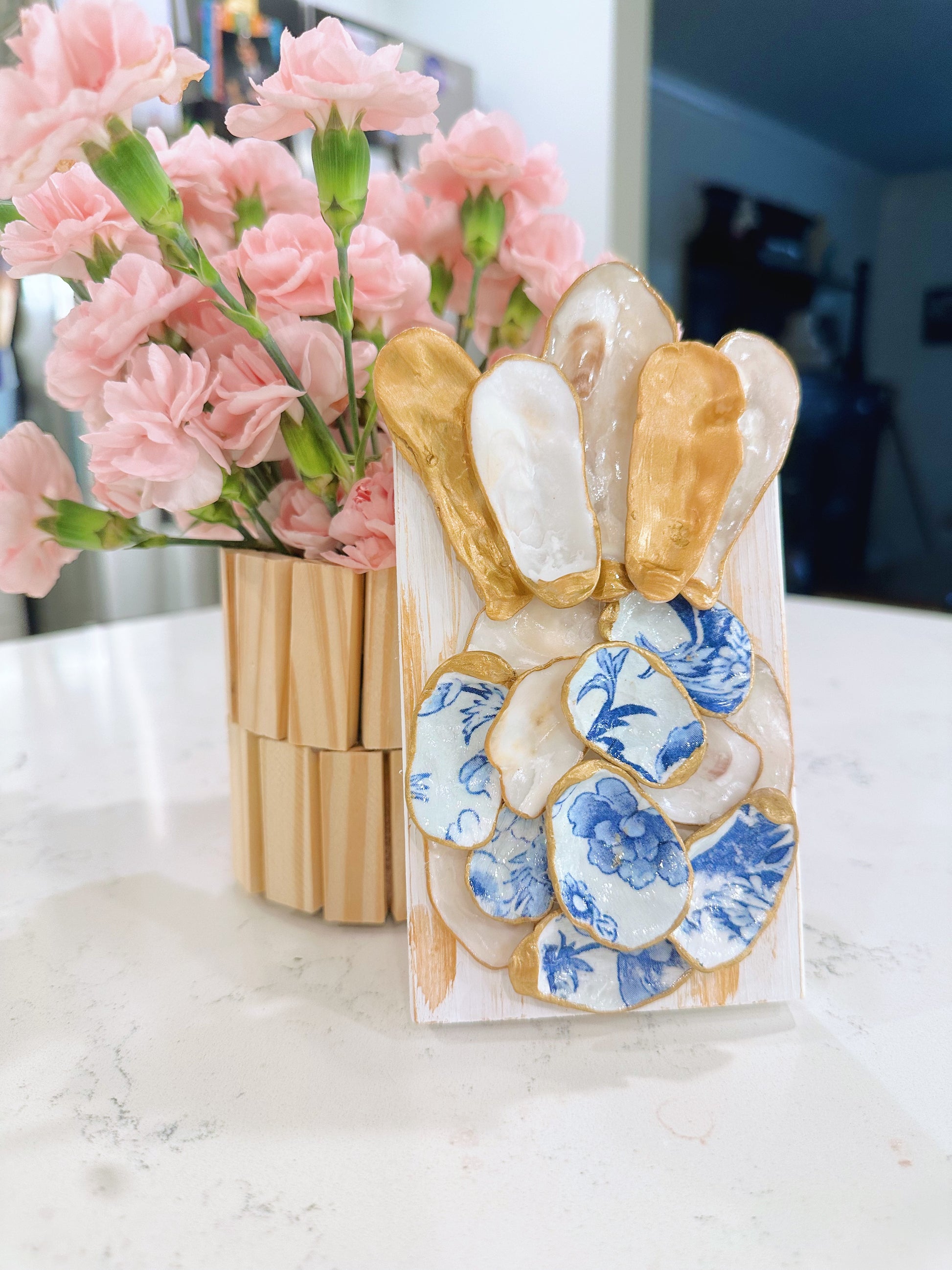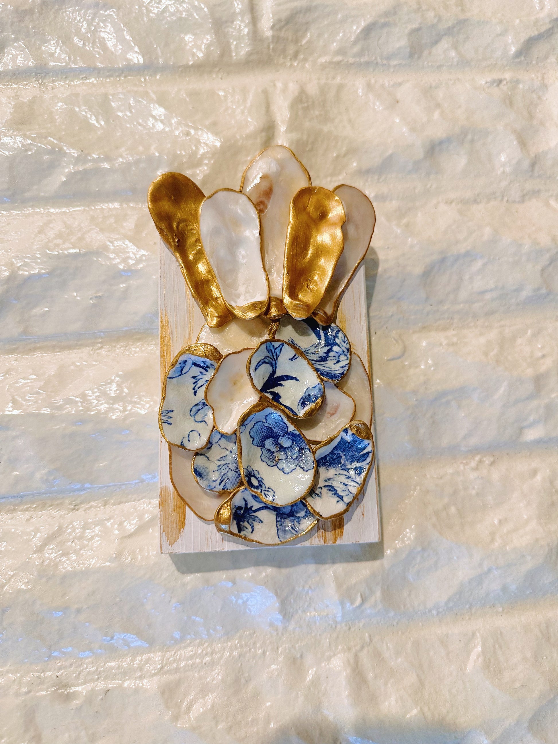 Handcrafted from delicate oyster shells, this pineapple boasts a beautiful contrast between its natural texture and eye-catching pattern. Add a touch of coastal paradise to your home decor with this precious piece!